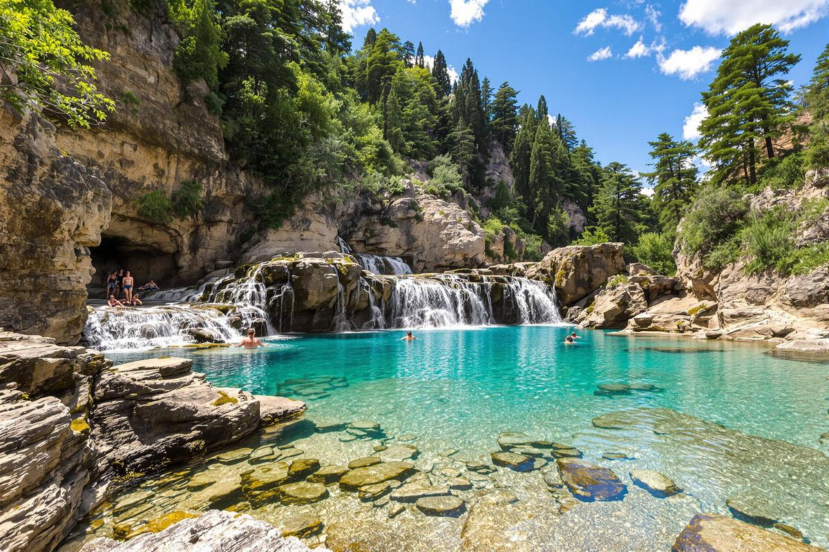Le vrai spectacle commence quand tu entends le bruit de l’eau dégringoler. Les cascades serpentent entre les roches, creusant leur chemin depuis des siècles. Certaines forment de petits bassins parfaits pour plonger, d’autres ressemblent à de véritables toboggans naturels.