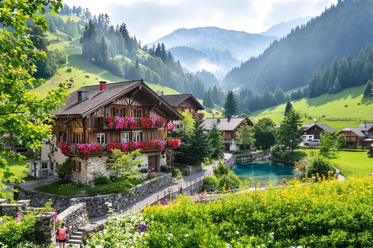 Dès les premières minutes dans le village, un sentiment de familiarité avec la Suisse vous envahit. L’architecture traditionnelle jurassienne rappelle vivement celle de nos voisins. Chalets massifs en bois sombre, balcons sculptés à la main et géraniums en fleurs… Impossible de ne pas faire le parallèle.
