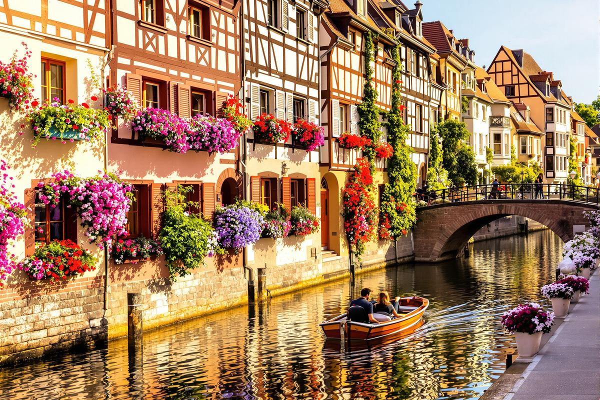 Colmar, en Alsace, ressemble à une illustration de conte pour enfants. Le quartier emblématique de la Petite Venise offre un décor féérique avec ses canaux étroits, ses maisons à colombages peintes, et des ruelles fleuries à chaque détour.
