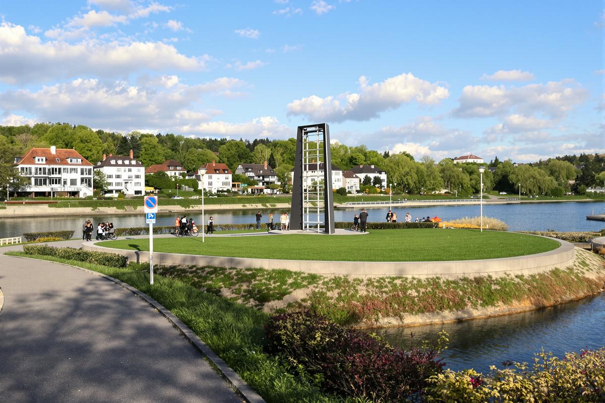 Ce lieu précis s’appelle un tripoint : un point où se rencontrent trois pays. À Bâle, il est symbolisé par un monument marquant l’intersection géographique entre la France, l’Allemagne et la Suisse.