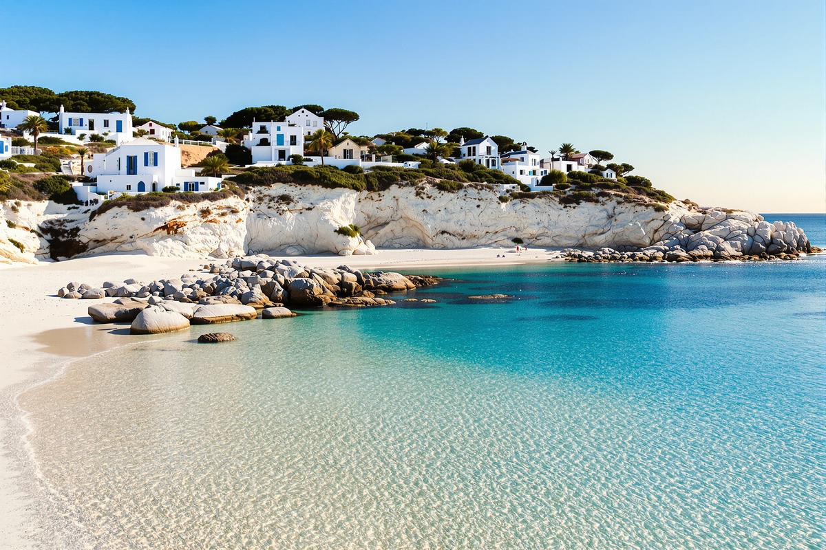 À ton arrivée sur l’île de Houat, dans le golfe du Morbihan, tu seras frappé par un contraste saisissant. Ici, pas de falaises abruptes ou de mers agitées. À la place, tu découvres un ruban de sable blanc long de près de 2 kilomètres qui évoque immédiatement les plages de Mykonos.