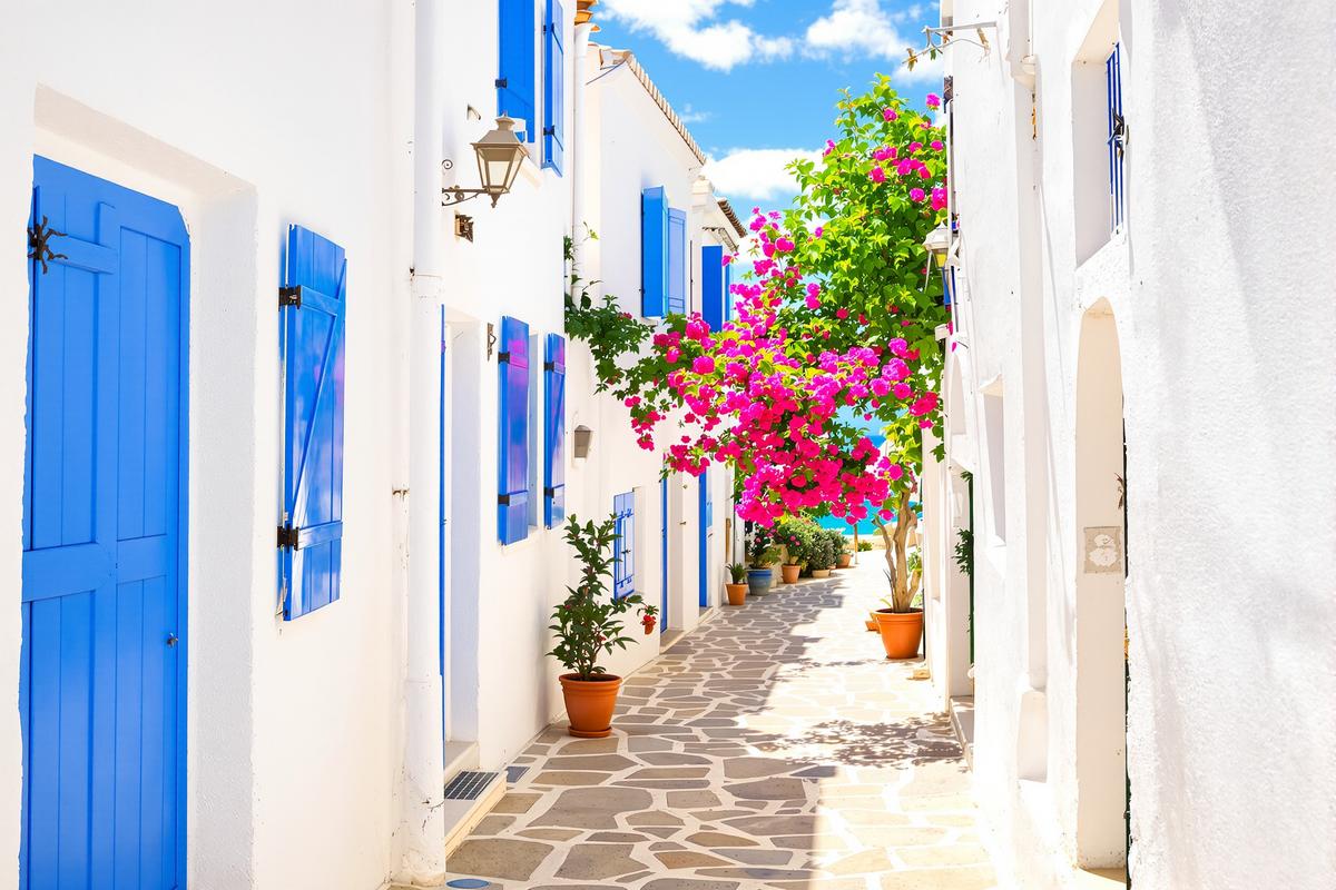 - Ruelles étroites et sinueuses typiques des îles grecques