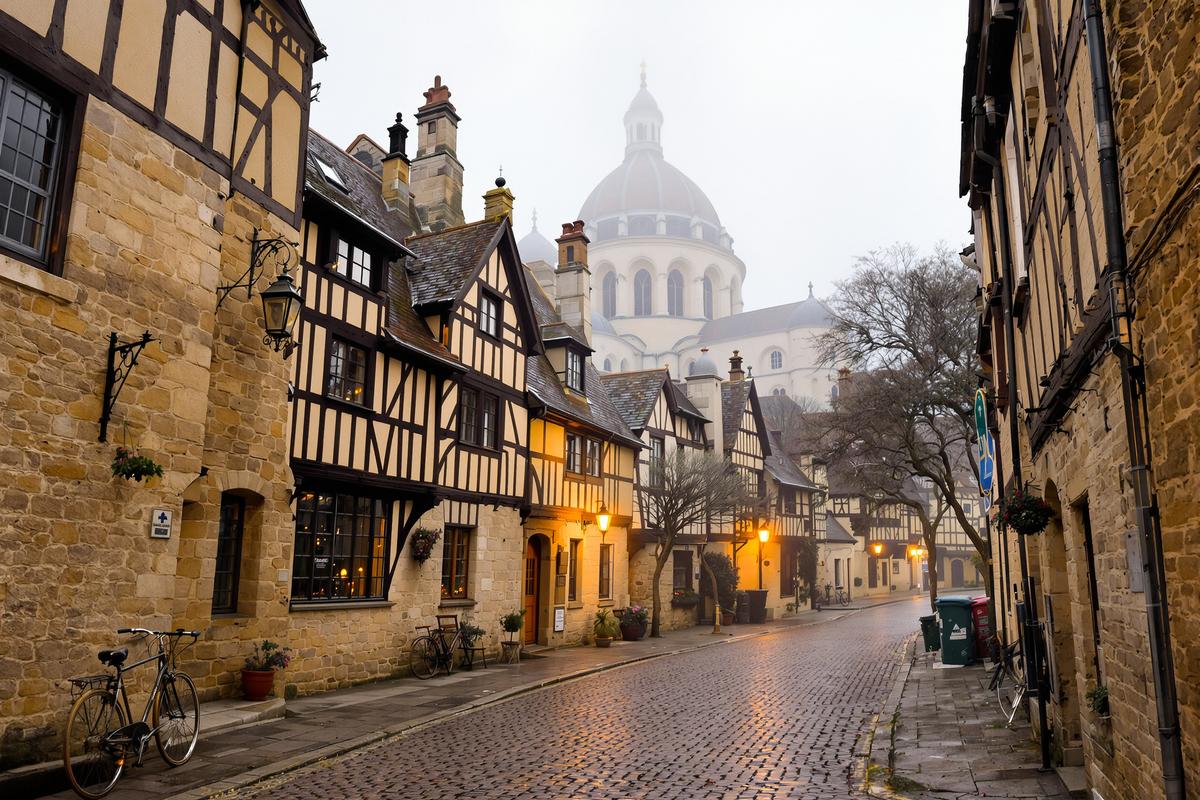 Imaginez : les toits couverts de brume au lever du jour. Le froid sec qui pique les joues. Et les cafés chaleureux où l’on s’installe près d’une cheminée, un vin chaud à la main.