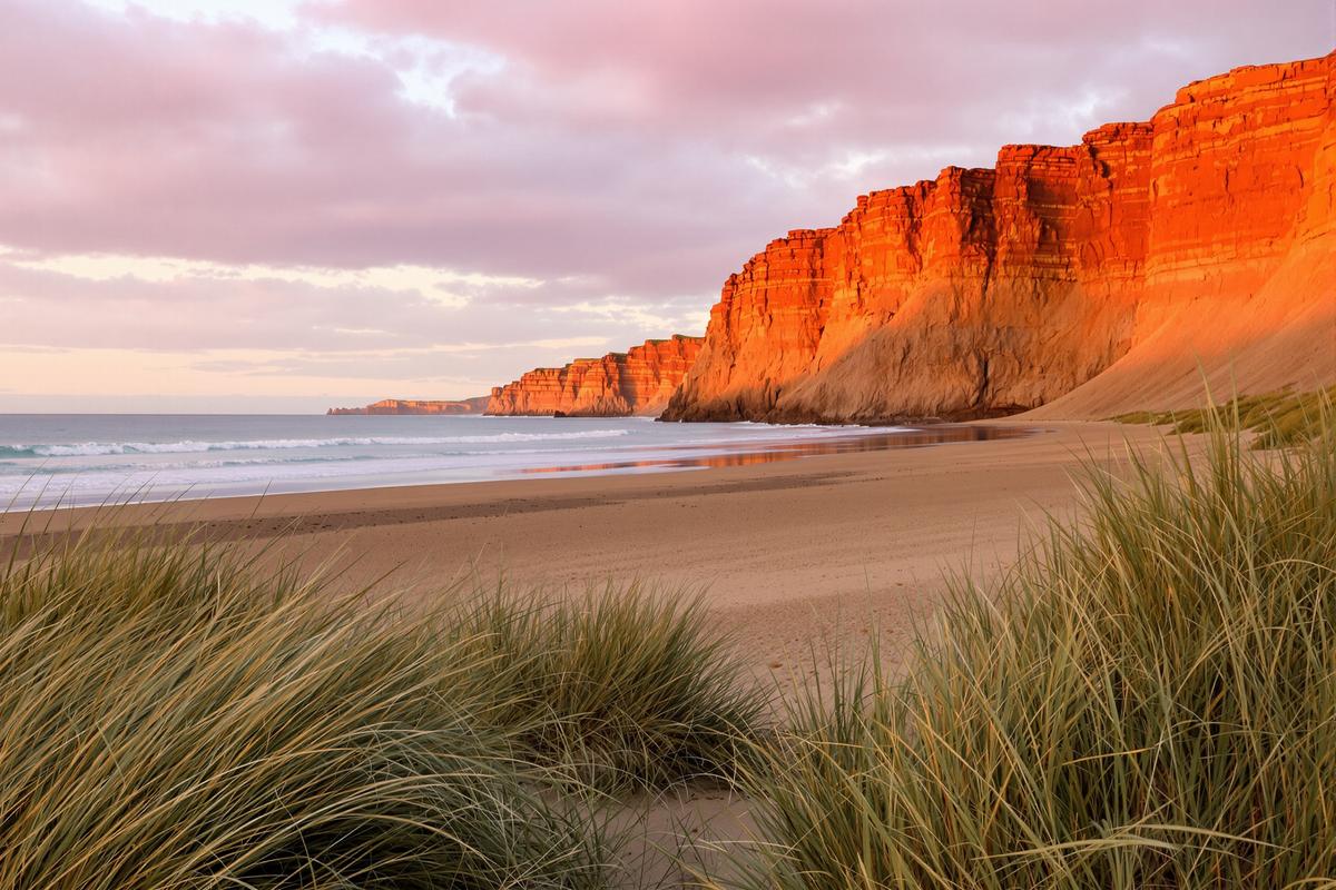- Au coucher du soleil : les falaises s’embrasent littéralement sous les rayons orange et dorés