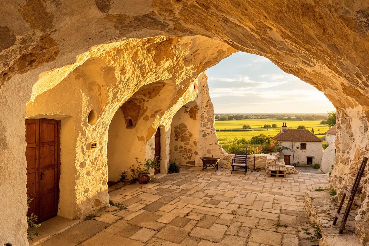 À première vue, Rochemenier ressemble à une bourgade tranquille du Maine-et-Loire. Mais en s’approchant, on découvre les toits affleurant le sol et des ouvertures étranges taillées dans la pierre. Ce ne sont pas des habitations ordinaires, mais deux fermes troglodytiques complètes, creusées directement dans la roche tendre du tuffeau calcaire.