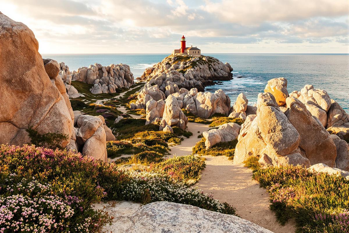 Cette portion, sans doute la plus célèbre, est parfaite pour une balade de quelques heures. En vedette : le phare de Men Ruz, rouge vif sur son rocher, veillant sur un chaos minéral fascinant.