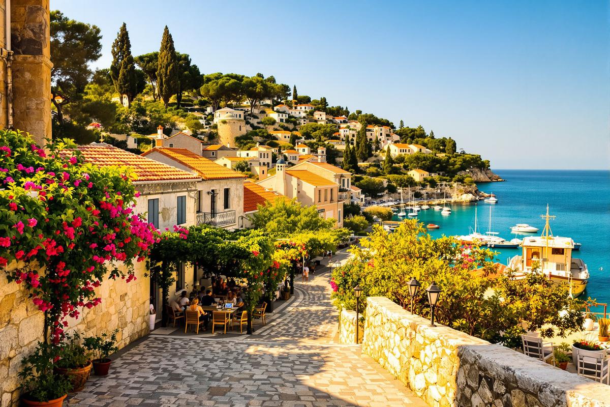 À votre arrivée, vous serez frappé par l’atmosphère paisible. Les ruelles pavées du centre historique, les petits ports bordés de cafés et les oliviers centenaires donnent une impression de carte postale hors du temps. Ici, chaque pierre semble raconter une histoire millénaire.