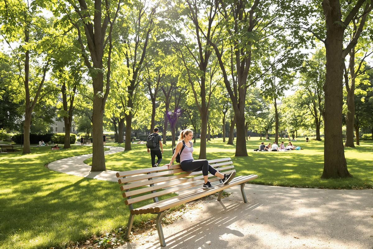 Ah, un banc à l’ombre… parfait pour une petite halte. Mais attends une seconde avant de t’asseoir. Et si tu l’utilisais pour muscler le haut de ton corps ?